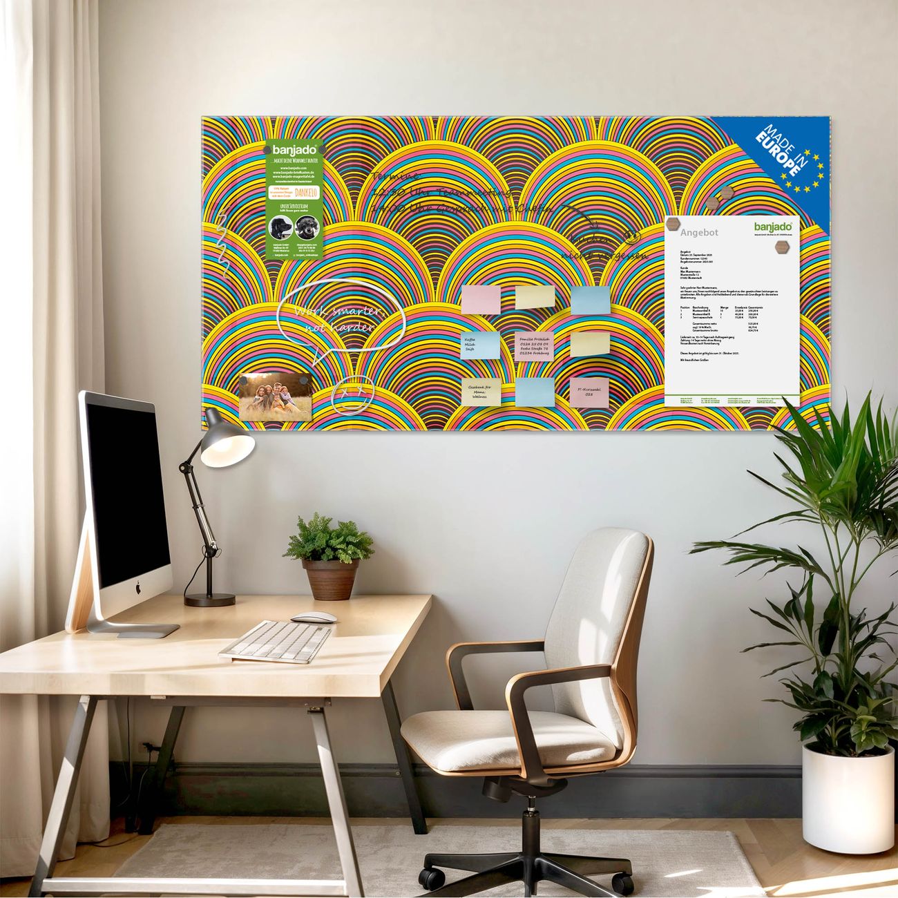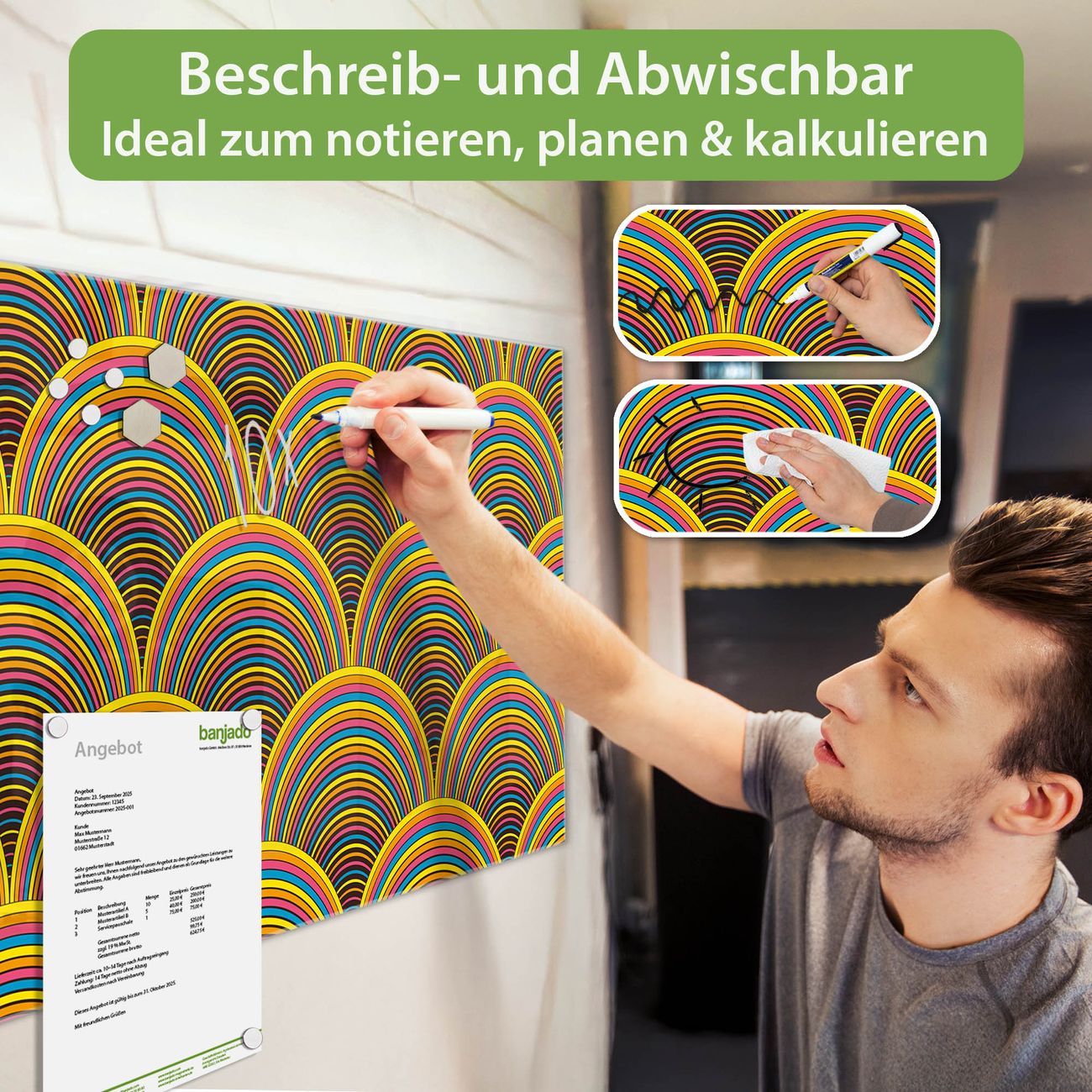 Die banjado Glas Magnettafel mit dem Motiv Motiv Regenbögen verbindet Funktionalität mit Stil. Sie ersetzt das Zettelchaos durch klare Strukturen und bringt dabei eine warme, natürliche Atmosphäre in Ihr Zuhause. Ob im Büro, in der Küche oder im Eingangsbereich - dieses Design-Board zieht Blicke an und sorgt für Ordnung mit Charakter.