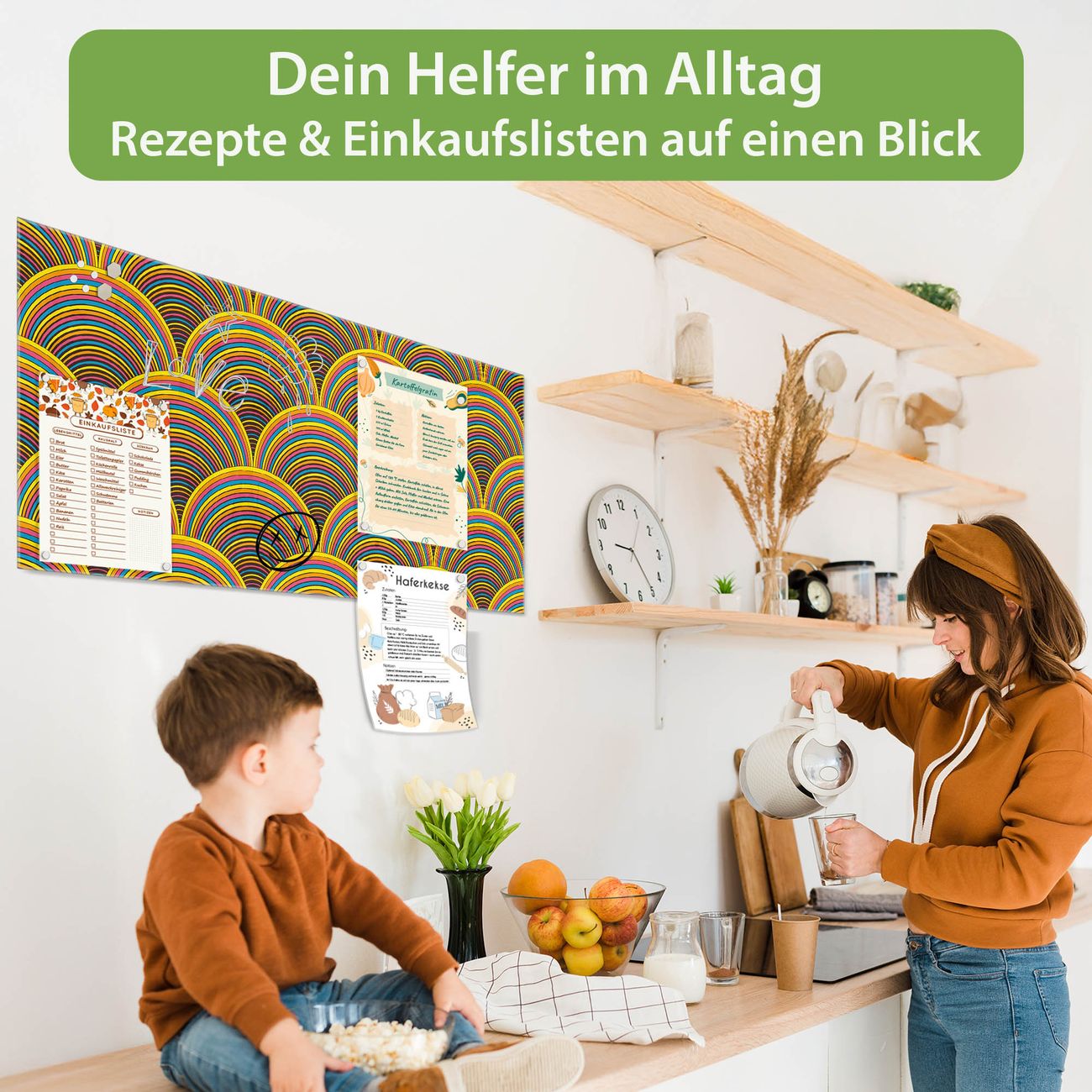 Ein Stück Design, das Ihren Alltag organisiert. Schreiben, heften, inspirieren - alles an einem Ort. Qualität, die man spürt. Montage leicht gemacht. Handwerk mit Herz - veredelt in Sachsen. Einzigartiges Design mit Motiv Motiv Regenbögen Beschreibbare Glasoberfläche, leicht zu reinigen Starke Magnetkraft durch Stahlrückwand Inklusive 4 Neodym-Magneten Flexible Montageoptionen Handveredelt in Sachsen - Qualität, die bleibt
