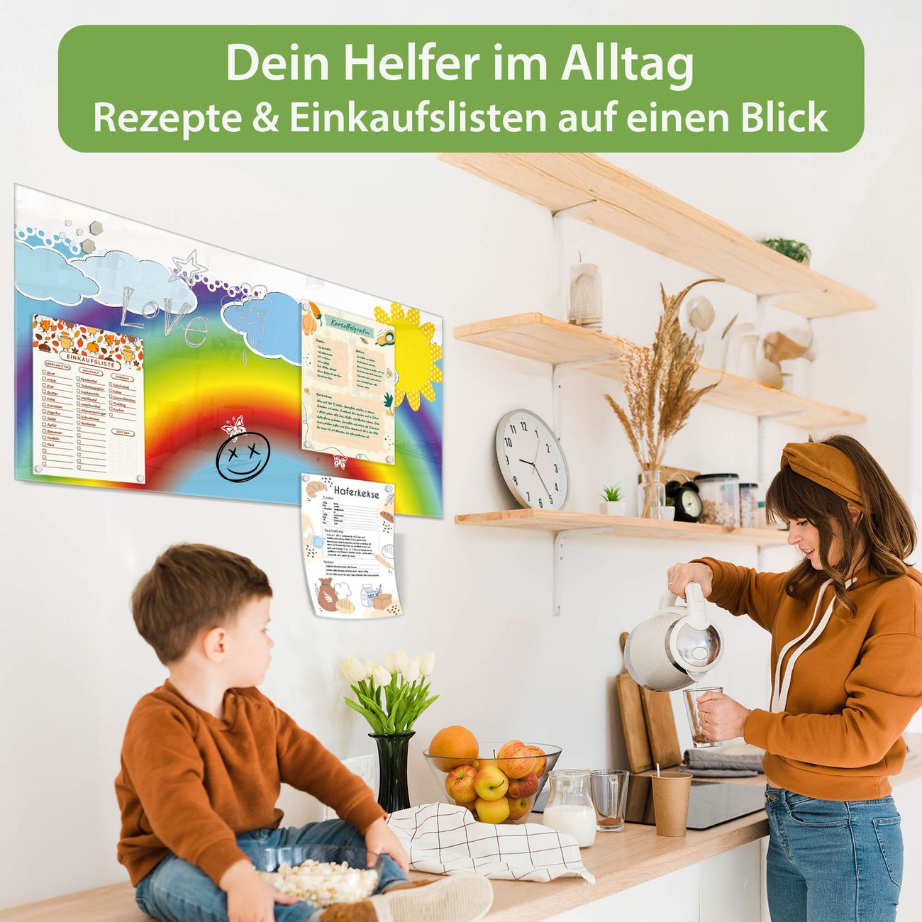 Ein Stück Design, das Ihren Alltag organisiert. Schreiben, heften, inspirieren - alles an einem Ort. Qualität, die man spürt. Montage leicht gemacht. Handwerk mit Herz - veredelt in Sachsen. Einzigartiges Design mit Motiv Motiv Regenbogen Beschreibbare Glasoberfläche, leicht zu reinigen Starke Magnetkraft durch Stahlrückwand Inklusive 4 Neodym-Magneten Flexible Montageoptionen Handveredelt in Sachsen - Qualität, die bleibt