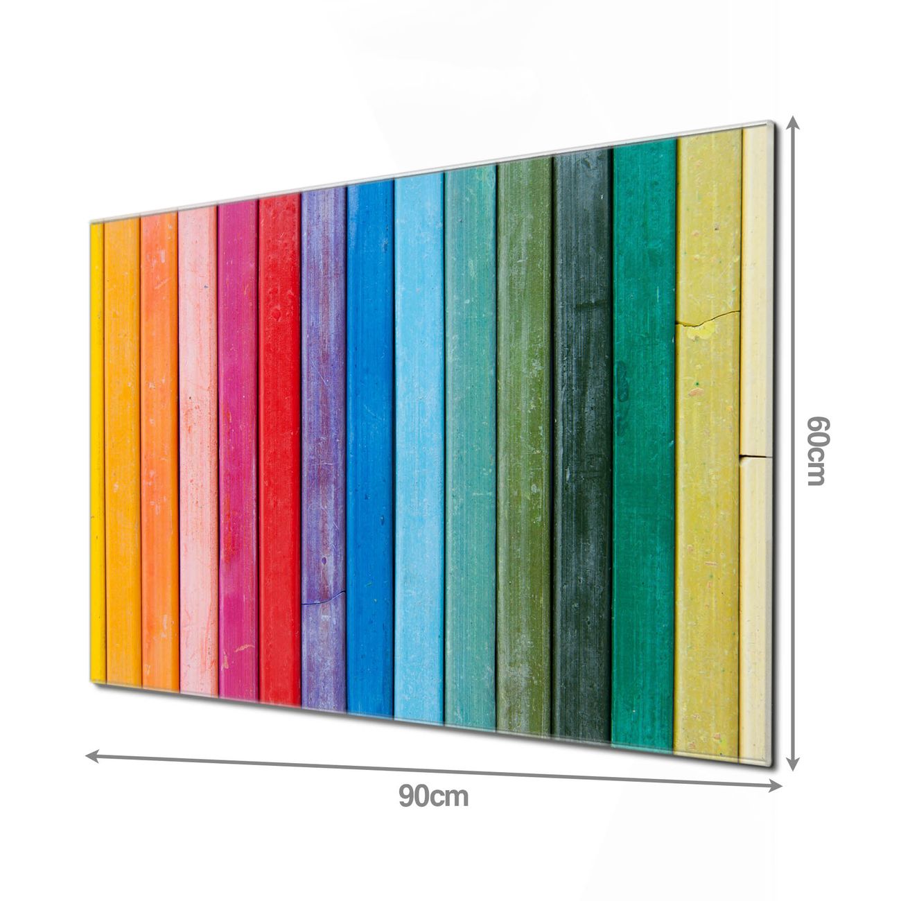 Material: 4mm Sicherheitsglas mit Metallrückwand Eigenschaften: beschreibbar, magnetisch, kratzfest Maße: 90x60x0,6cm, 8,10kg schwer Motiv Nummer 12175 Regenbogenfarben Zubehör: inklusive 4 Neodym-Magnete