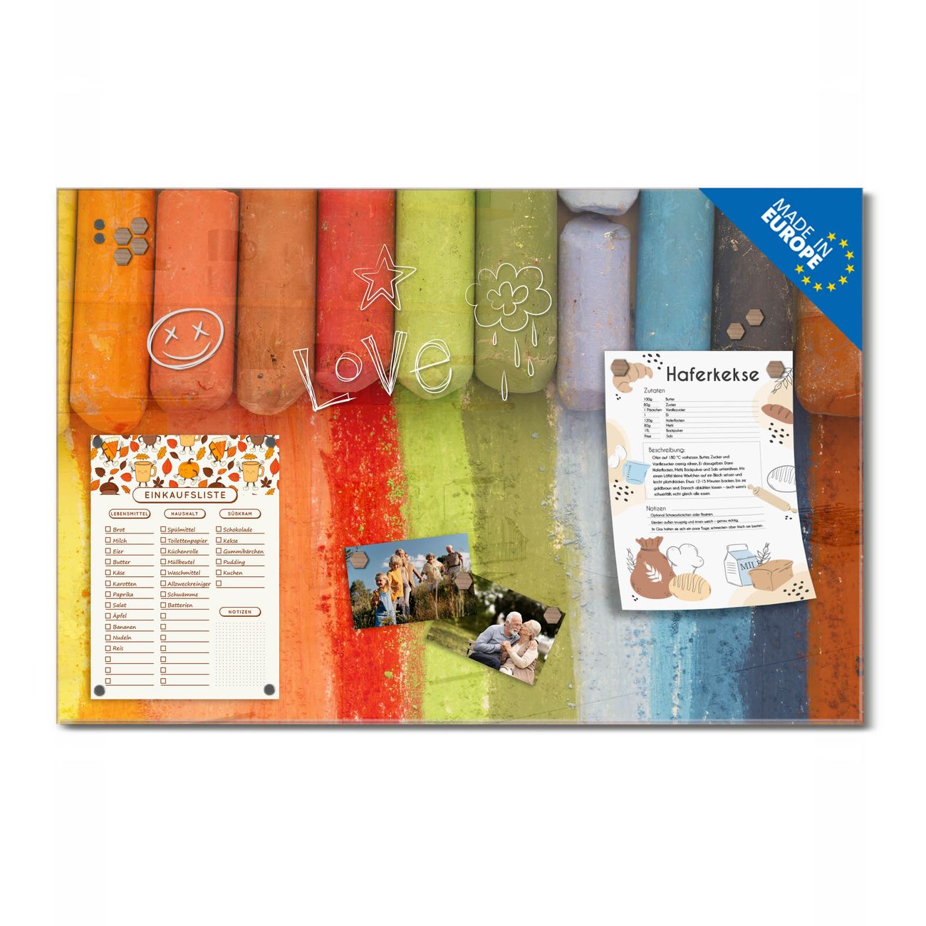 Glas Magnettafel im Querformat Motiv Regenbogenkreide