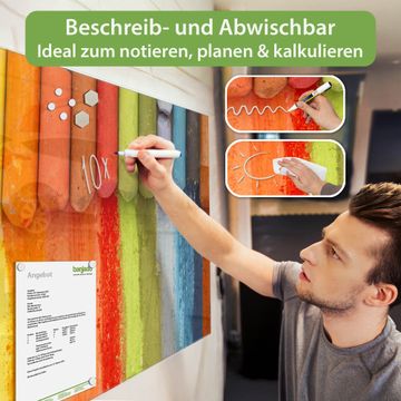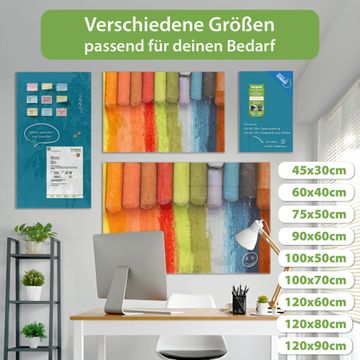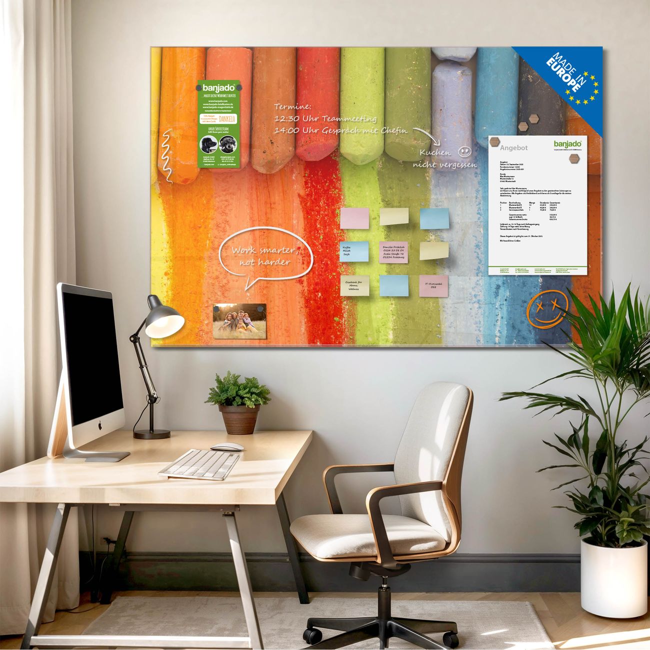 Die banjado Glas Magnettafel mit dem Motiv Motiv Regenbogenkreide verbindet Funktionalität mit Stil. Sie ersetzt das Zettelchaos durch klare Strukturen und bringt dabei eine warme, natürliche Atmosphäre in Ihr Zuhause. Ob im Büro, in der Küche oder im Eingangsbereich - dieses Design-Board zieht Blicke an und sorgt für Ordnung mit Charakter.