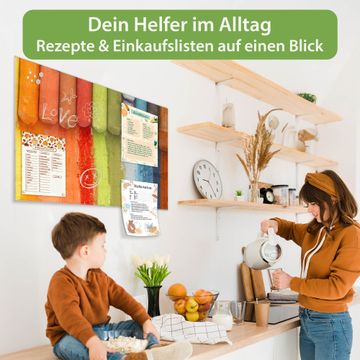 Ein Stück Design, das Ihren Alltag organisiert. Schreiben, heften, inspirieren - alles an einem Ort. Qualität, die man spürt. Montage leicht gemacht. Handwerk mit Herz - veredelt in Sachsen. Einzigartiges Design mit Motiv Motiv Regenbogenkreide Beschreibbare Glasoberfläche, leicht zu reinigen Starke Magnetkraft durch Stahlrückwand Inklusive 4 Neodym-Magneten Flexible Montageoptionen Handveredelt in Sachsen - Qualität, die bleibt