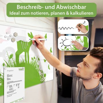 Die banjado Glas Magnettafel mit dem Motiv Motiv Rehkitz verbindet Funktionalität mit Stil. Sie ersetzt das Zettelchaos durch klare Strukturen und bringt dabei eine warme, natürliche Atmosphäre in Ihr Zuhause. Ob im Büro, in der Küche oder im Eingangsbereich - dieses Design-Board zieht Blicke an und sorgt für Ordnung mit Charakter.