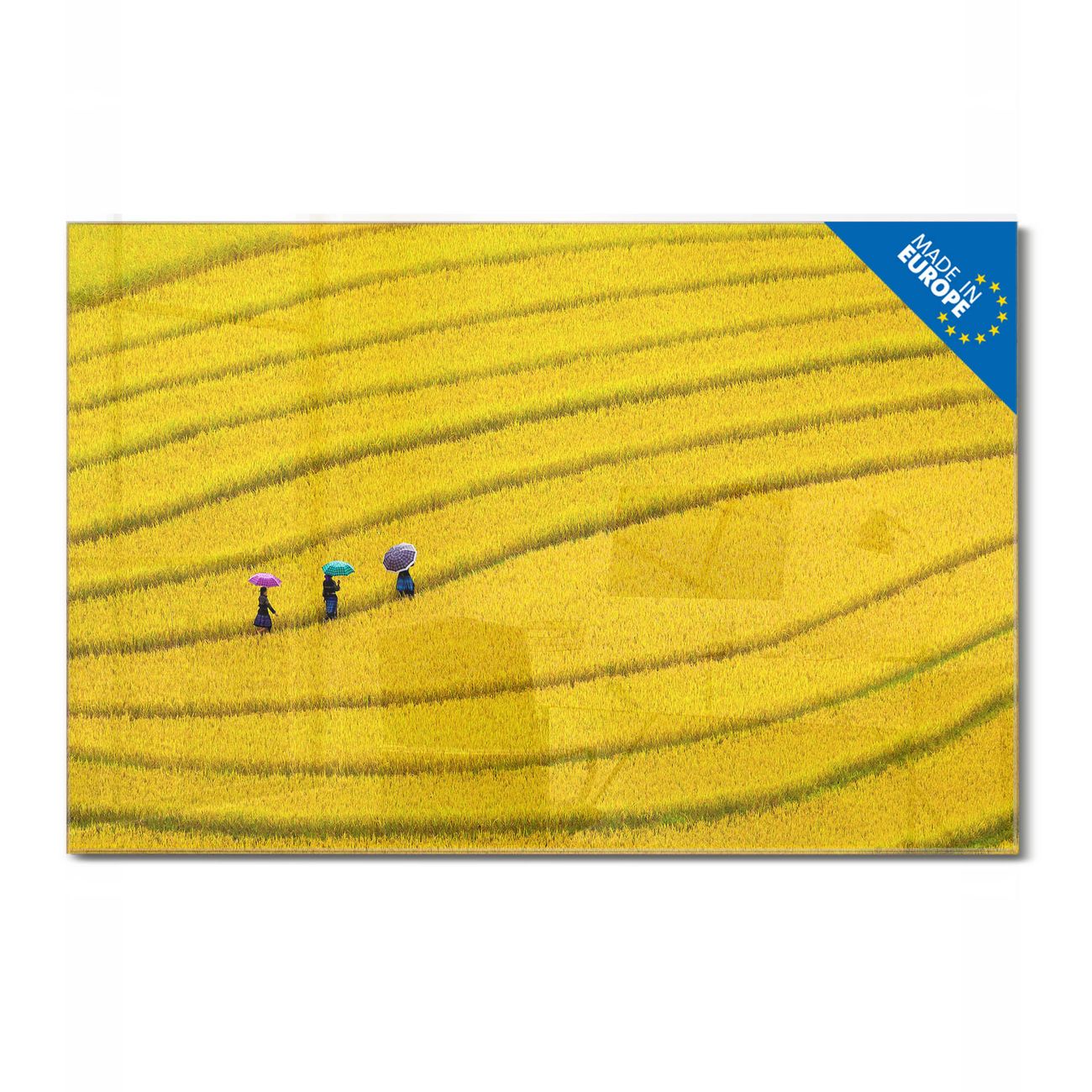 Material: 4mm Sicherheitsglas mit Metallrückwand Eigenschaften: beschreibbar, magnetisch, kratzfest Maße: 90x60x0,6cm, 8,10kg schwer Motiv Nummer 12669 Reisfeld Vietnam  Zubehör: inklusive 4 Neodym-Magnete