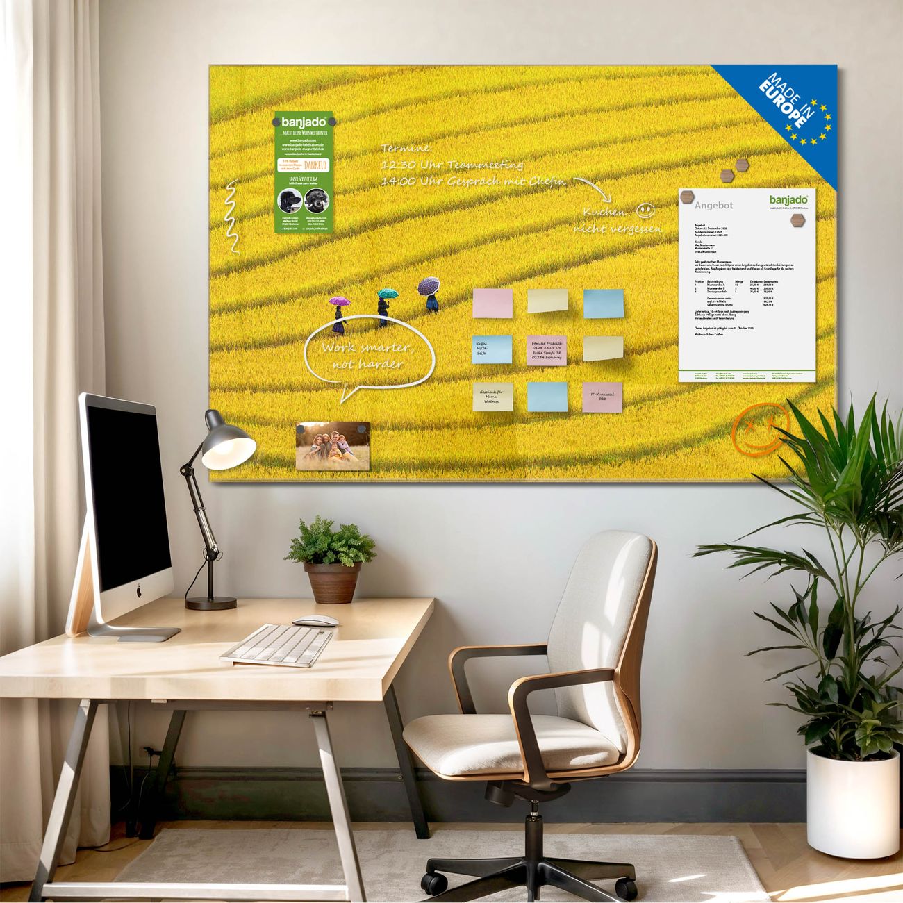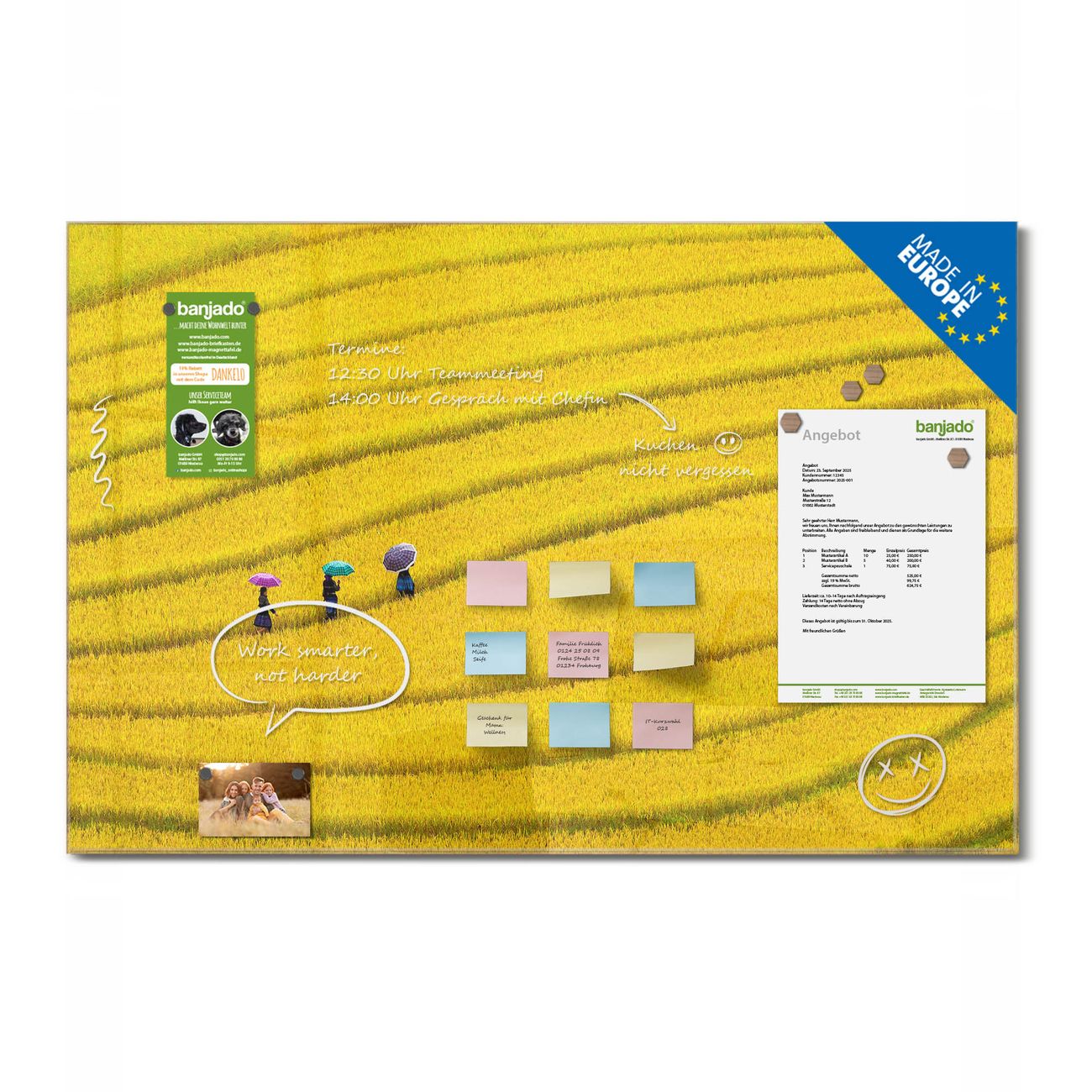 Die banjado Glas Magnettafel mit dem Motiv Motiv Reisfeld Vietnam  verbindet Funktionalität mit Stil. Sie ersetzt das Zettelchaos durch klare Strukturen und bringt dabei eine warme, natürliche Atmosphäre in Ihr Zuhause. Ob im Büro, in der Küche oder im Eingangsbereich - dieses Design-Board zieht Blicke an und sorgt für Ordnung mit Charakter.