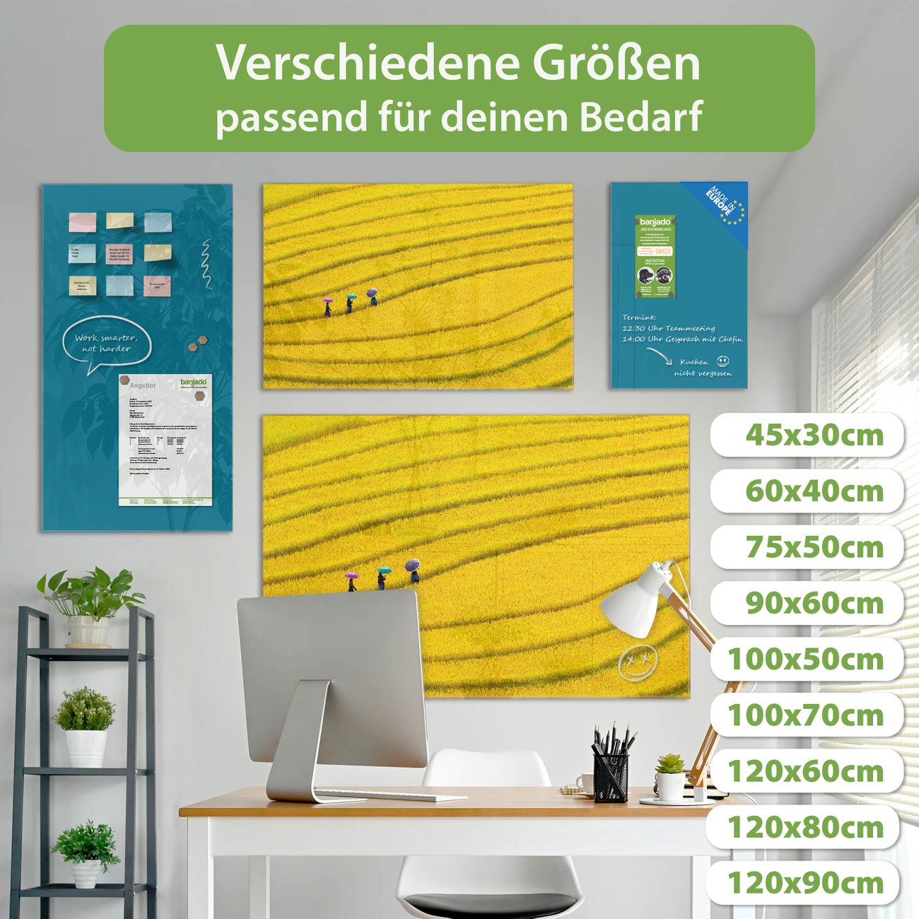 Ein Stück Design, das Ihren Alltag organisiert. Schreiben, heften, inspirieren - alles an einem Ort. Qualität, die man spürt. Montage leicht gemacht. Handwerk mit Herz - veredelt in Sachsen. Einzigartiges Design mit Motiv Motiv Reisfeld Vietnam  Beschreibbare Glasoberfläche, leicht zu reinigen Starke Magnetkraft durch Stahlrückwand Inklusive 4 Neodym-Magneten Flexible Montageoptionen Handveredelt in Sachsen - Qualität, die bleibt