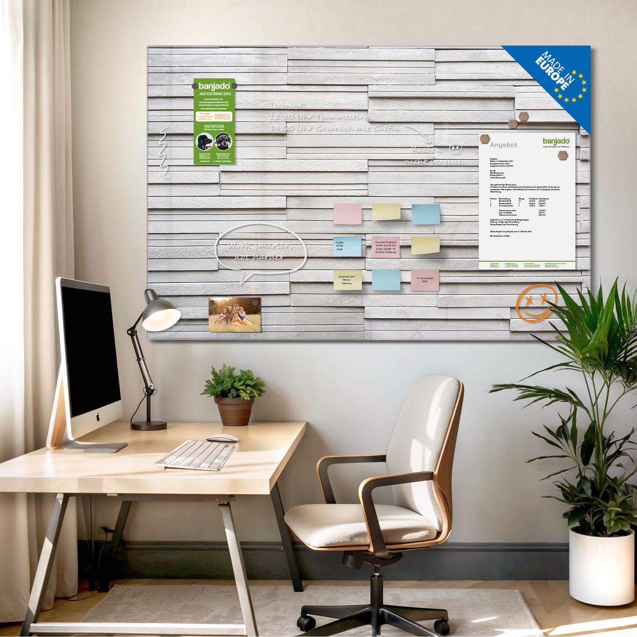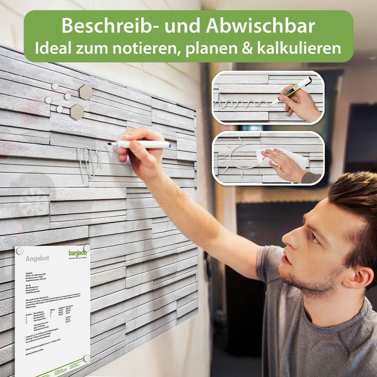 Die banjado Glas Magnettafel mit dem Motiv Motiv Relief verbindet Funktionalität mit Stil. Sie ersetzt das Zettelchaos durch klare Strukturen und bringt dabei eine warme, natürliche Atmosphäre in Ihr Zuhause. Ob im Büro, in der Küche oder im Eingangsbereich - dieses Design-Board zieht Blicke an und sorgt für Ordnung mit Charakter.