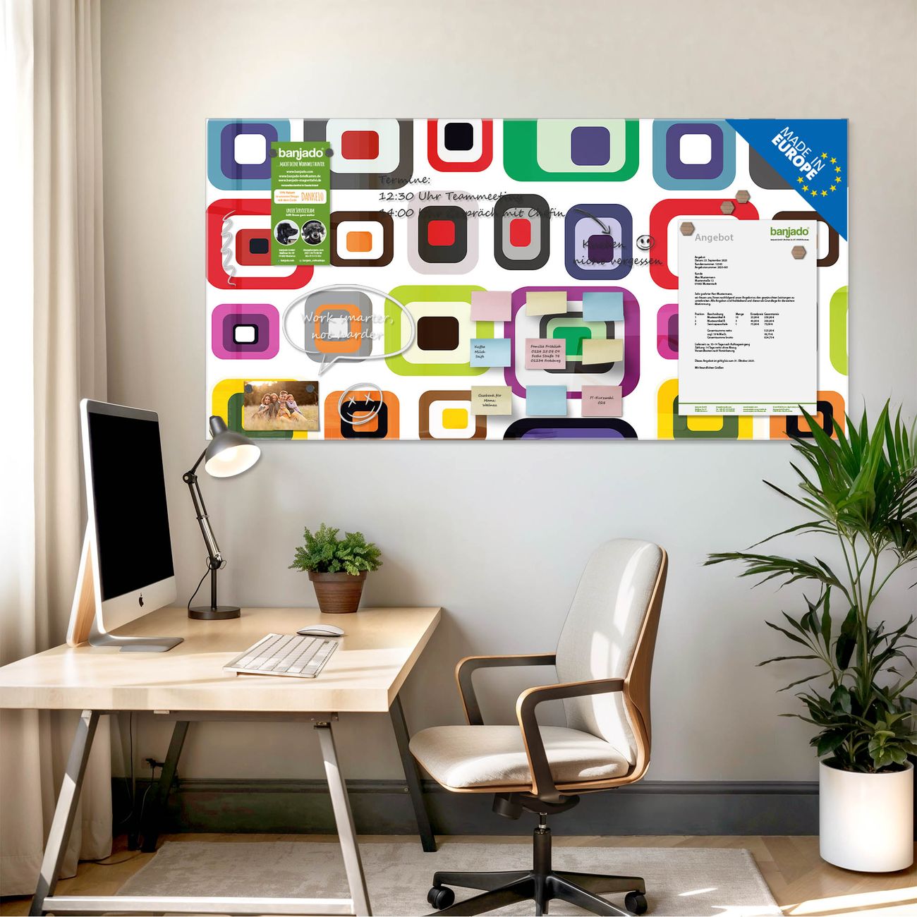 Die banjado Glas Magnettafel mit dem Motiv Motiv Retro 2 verbindet Funktionalität mit Stil. Sie ersetzt das Zettelchaos durch klare Strukturen und bringt dabei eine warme, natürliche Atmosphäre in Ihr Zuhause. Ob im Büro, in der Küche oder im Eingangsbereich - dieses Design-Board zieht Blicke an und sorgt für Ordnung mit Charakter.