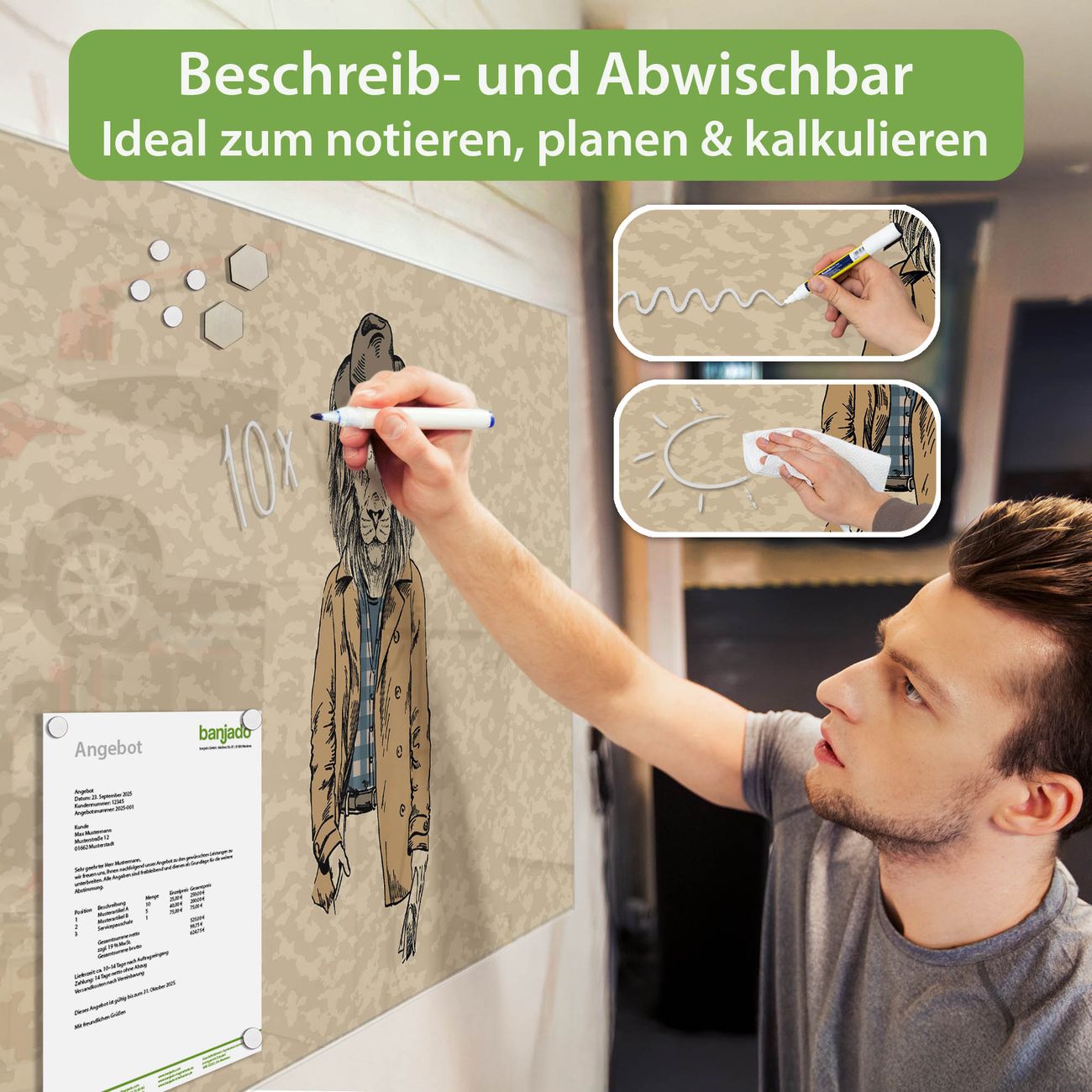 Die banjado Glas Magnettafel mit dem Motiv Motiv Retro Style verbindet Funktionalität mit Stil. Sie ersetzt das Zettelchaos durch klare Strukturen und bringt dabei eine warme, natürliche Atmosphäre in Ihr Zuhause. Ob im Büro, in der Küche oder im Eingangsbereich - dieses Design-Board zieht Blicke an und sorgt für Ordnung mit Charakter.