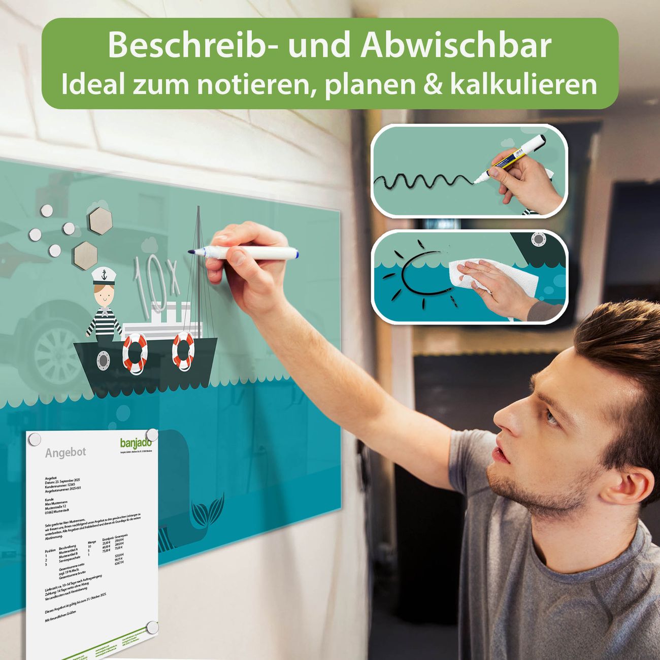 Jede Glas Magnettafel wird in unserer Werkstatt von Hand gefertigt und sorgfältig geprüft. So erhalten Sie ein echtes Qualitätsprodukt, das Funktion und Ästhetik perfekt vereint.?? Warum banjado?