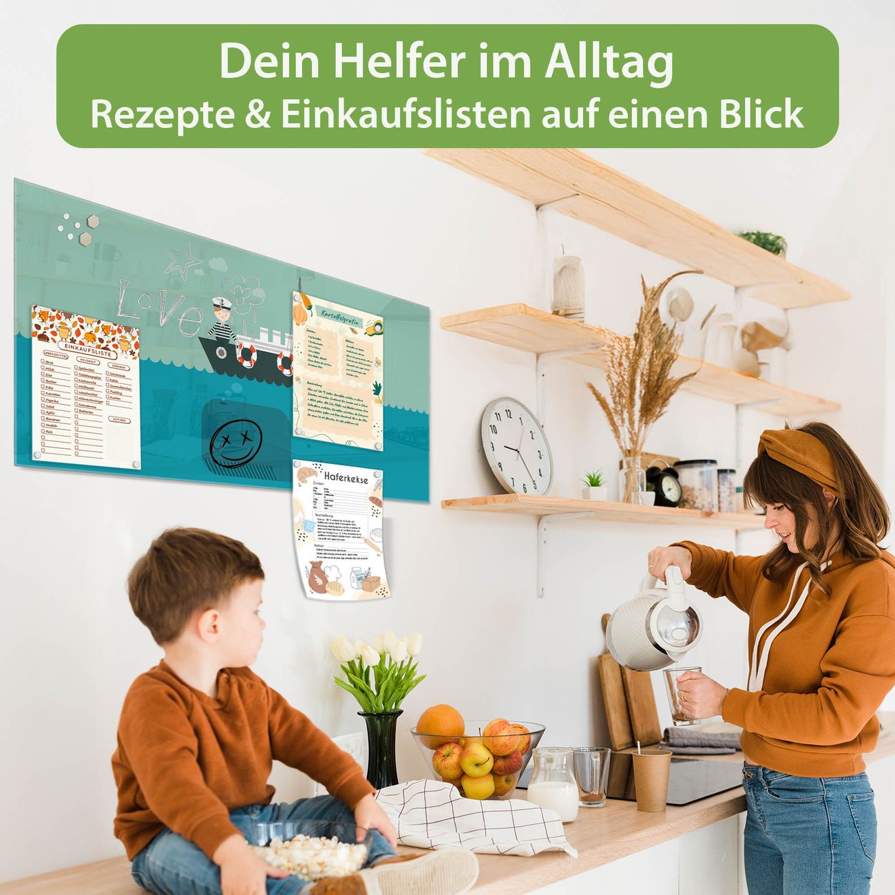 Auf der glatten Glasoberfläche lassen sich Termine, Rezepte oder Notizen ganz einfach mit Kreidestiften festhalten und rückstandslos entfernen. Starke Neodym-Magnete halten Ihre wichtigsten Erinnerungen sicher an Ort und Stelle. So entsteht Ihre ganz persönliche Ideenwand - jeden Tag neu.