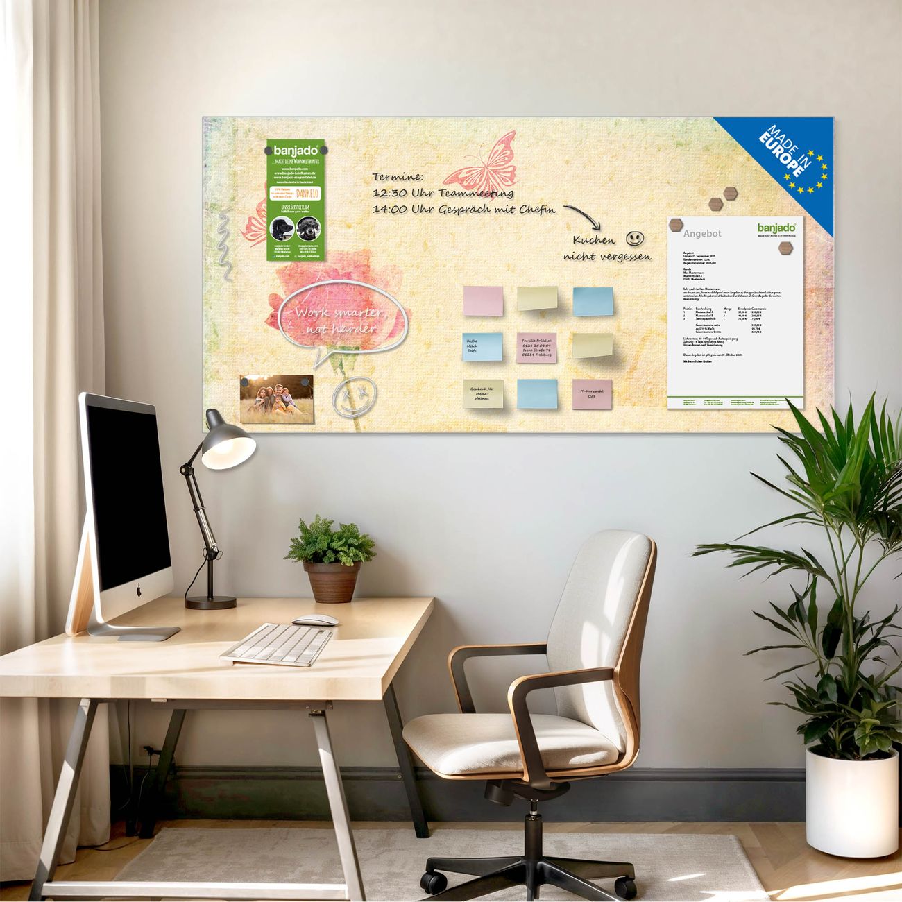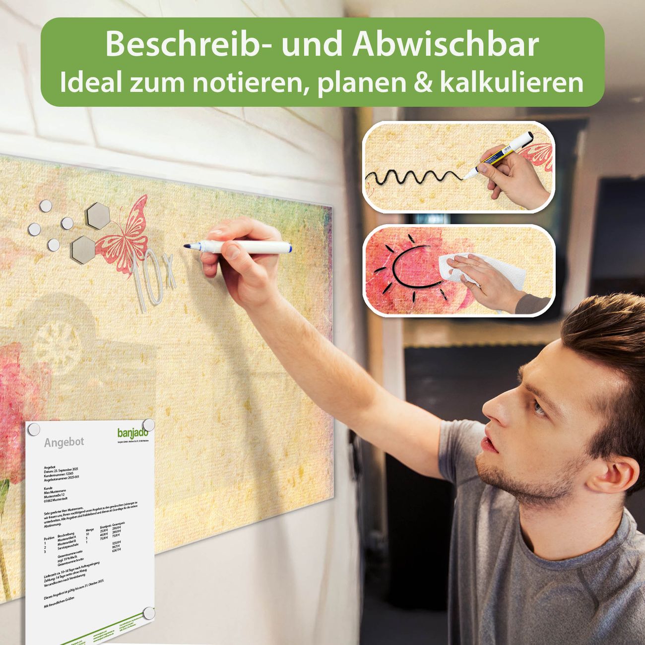 Die banjado Glas Magnettafel mit dem Motiv Motiv Romantik verbindet Funktionalität mit Stil. Sie ersetzt das Zettelchaos durch klare Strukturen und bringt dabei eine warme, natürliche Atmosphäre in Ihr Zuhause. Ob im Büro, in der Küche oder im Eingangsbereich - dieses Design-Board zieht Blicke an und sorgt für Ordnung mit Charakter.