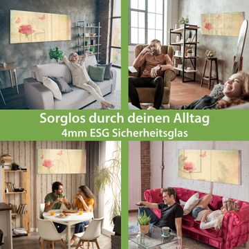 Material: 4mm Sicherheitsglas mit Metallrückwand Eigenschaften: beschreibbar, magnetisch, kratzfest Maße: 120x60x0,6cm, 10,80kg schwer Motiv Nummer 10369 Romantik Zubehör: inklusive 4 Neodym-Magnete