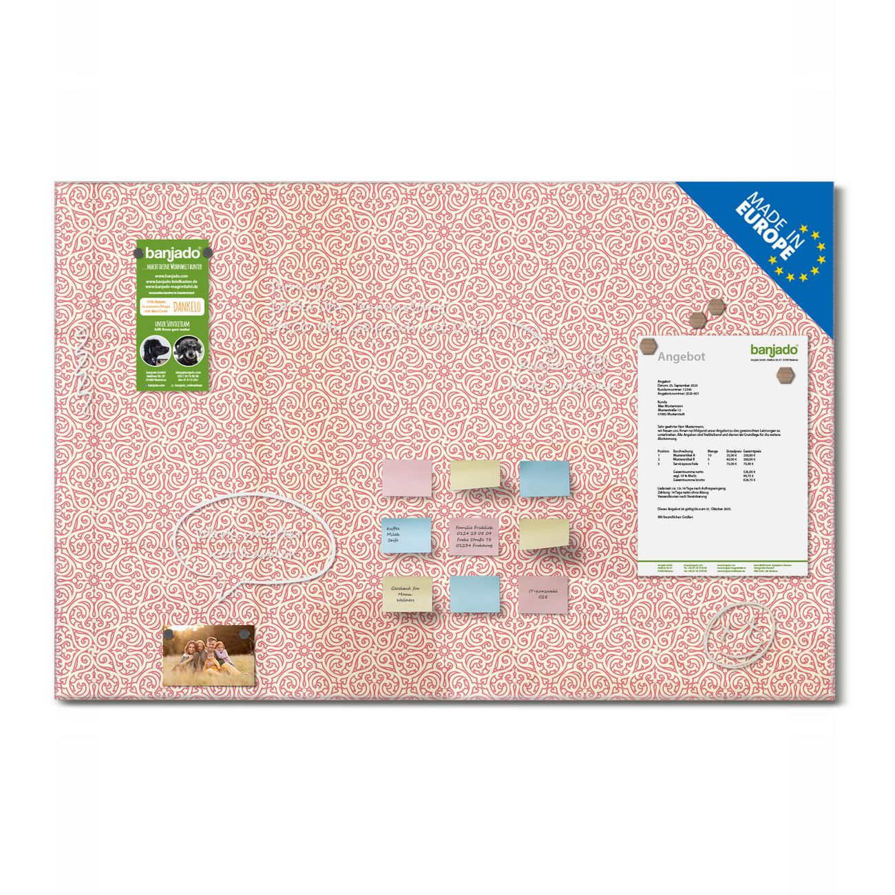 Glas Magnettafel im Querformat Motiv Rosa Arabesque