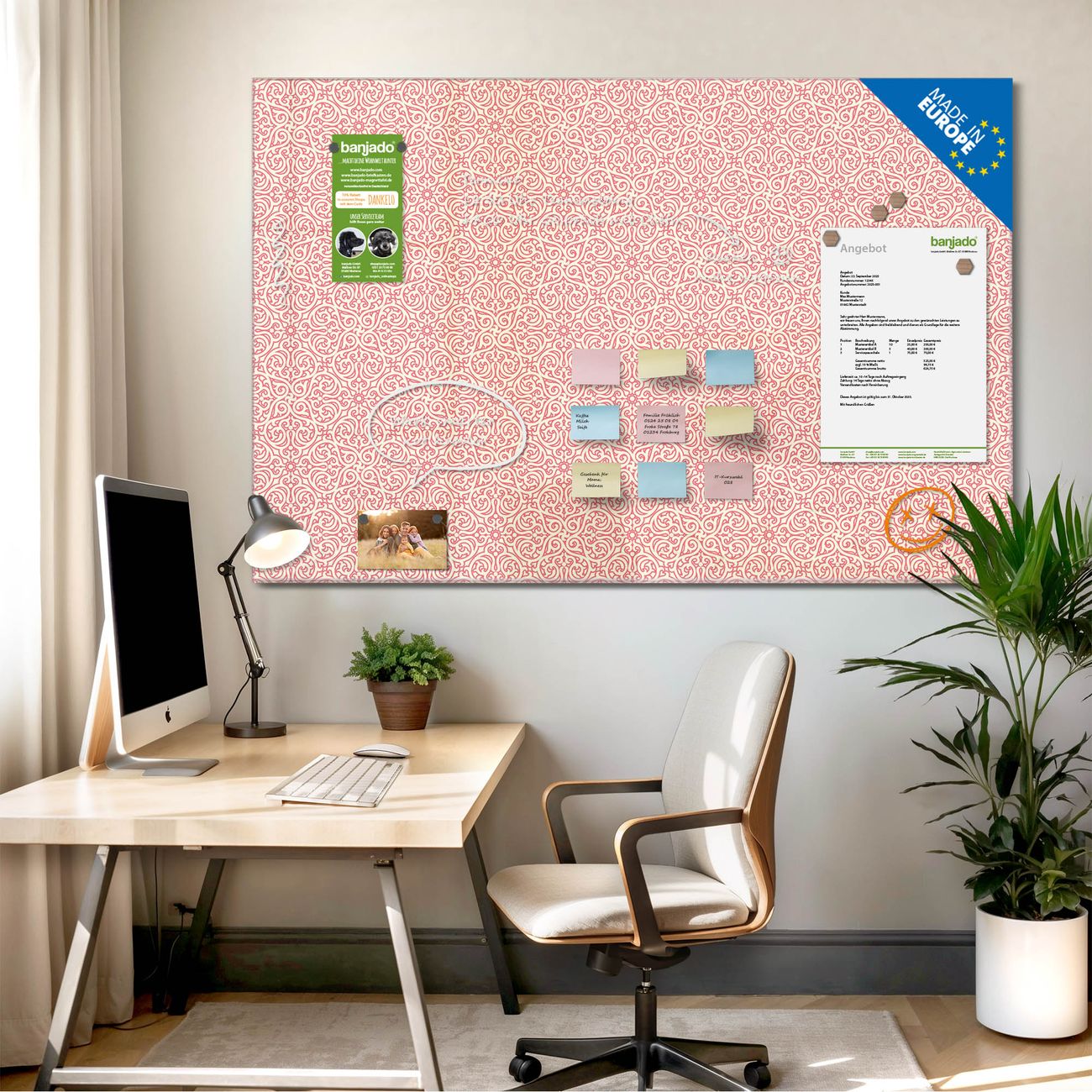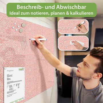 Die banjado Glas Magnettafel mit dem Motiv Motiv Rosa Arabesque verbindet Funktionalität mit Stil. Sie ersetzt das Zettelchaos durch klare Strukturen und bringt dabei eine warme, natürliche Atmosphäre in Ihr Zuhause. Ob im Büro, in der Küche oder im Eingangsbereich - dieses Design-Board zieht Blicke an und sorgt für Ordnung mit Charakter.
