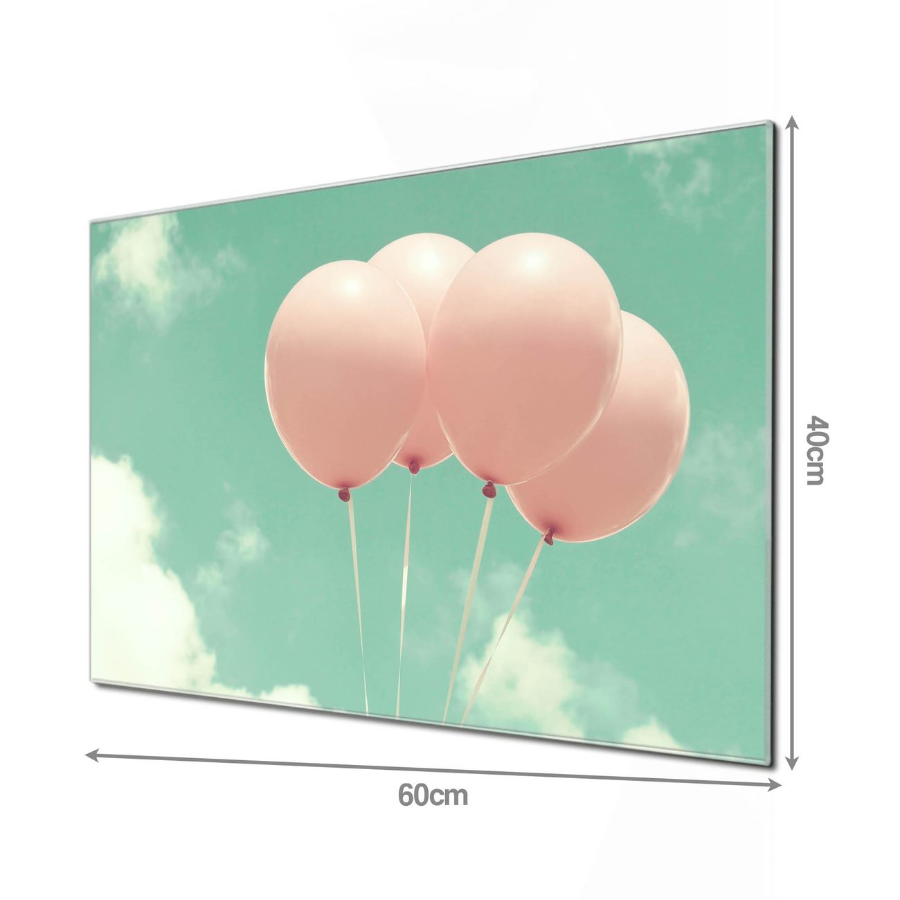 Material  4mm Sicherheitsglas mit Metallrückwand Eigenschaften  beschreibbar, magnetisch, kratzfest Maße  60x40x0,6cm, 3,6kg schwer Motiv  Nummer 11434 Rosa Ballons Zubehör  inklusive 4 Neodym-Magnete