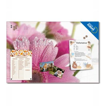 Material: 4mm Sicherheitsglas mit Metallrückwand Eigenschaften: beschreibbar, magnetisch, kratzfest Maße: 45x30x0,6cm, 2,03kg schwer Motiv Nummer 10152 Rosa Gerbera Zubehör: inklusive 4 Neodym-Magnete