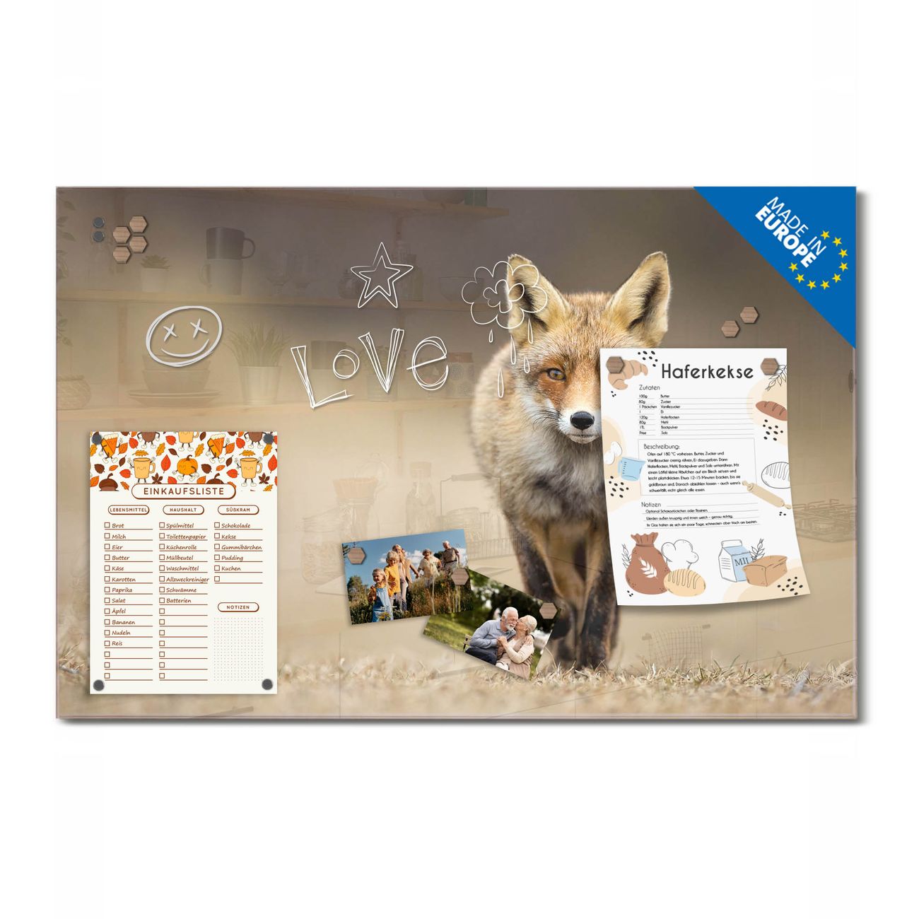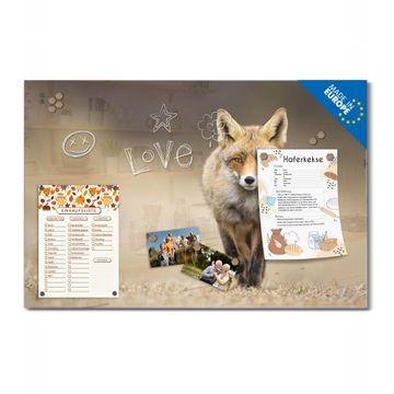 Material: 4mm Sicherheitsglas mit Metallrückwand Eigenschaften: beschreibbar, magnetisch, kratzfest Maße: 75x50x0,6cm, 5,63kg schwer Motiv Nummer 10828 Rosalie Zubehör: inklusive 4 Neodym-Magnete