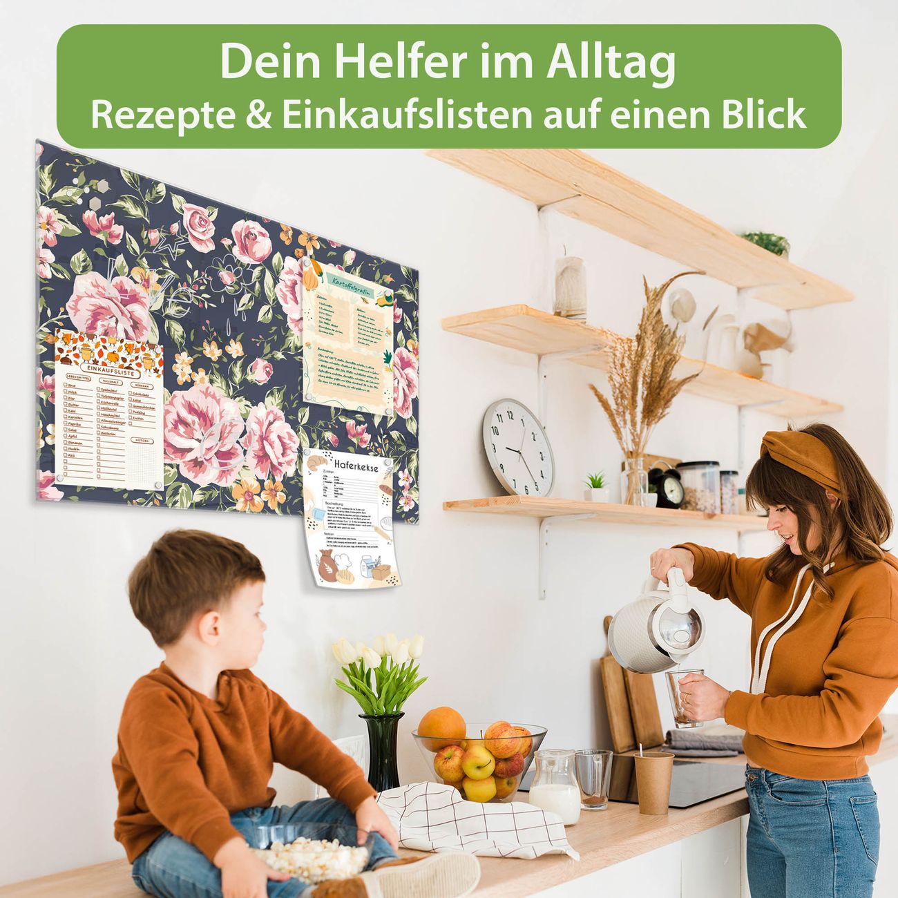 Ein Stück Design, das Ihren Alltag organisiert. Schreiben, heften, inspirieren - alles an einem Ort. Qualität, die man spürt. Montage leicht gemacht. Handwerk mit Herz - veredelt in Sachsen. Einzigartiges Design mit Motiv Motiv Rosen Auf Anthrazit Beschreibbare Glasoberfläche, leicht zu reinigen Starke Magnetkraft durch Stahlrückwand Inklusive 4 Neodym-Magneten Flexible Montageoptionen Handveredelt in Sachsen - Qualität, die bleibt