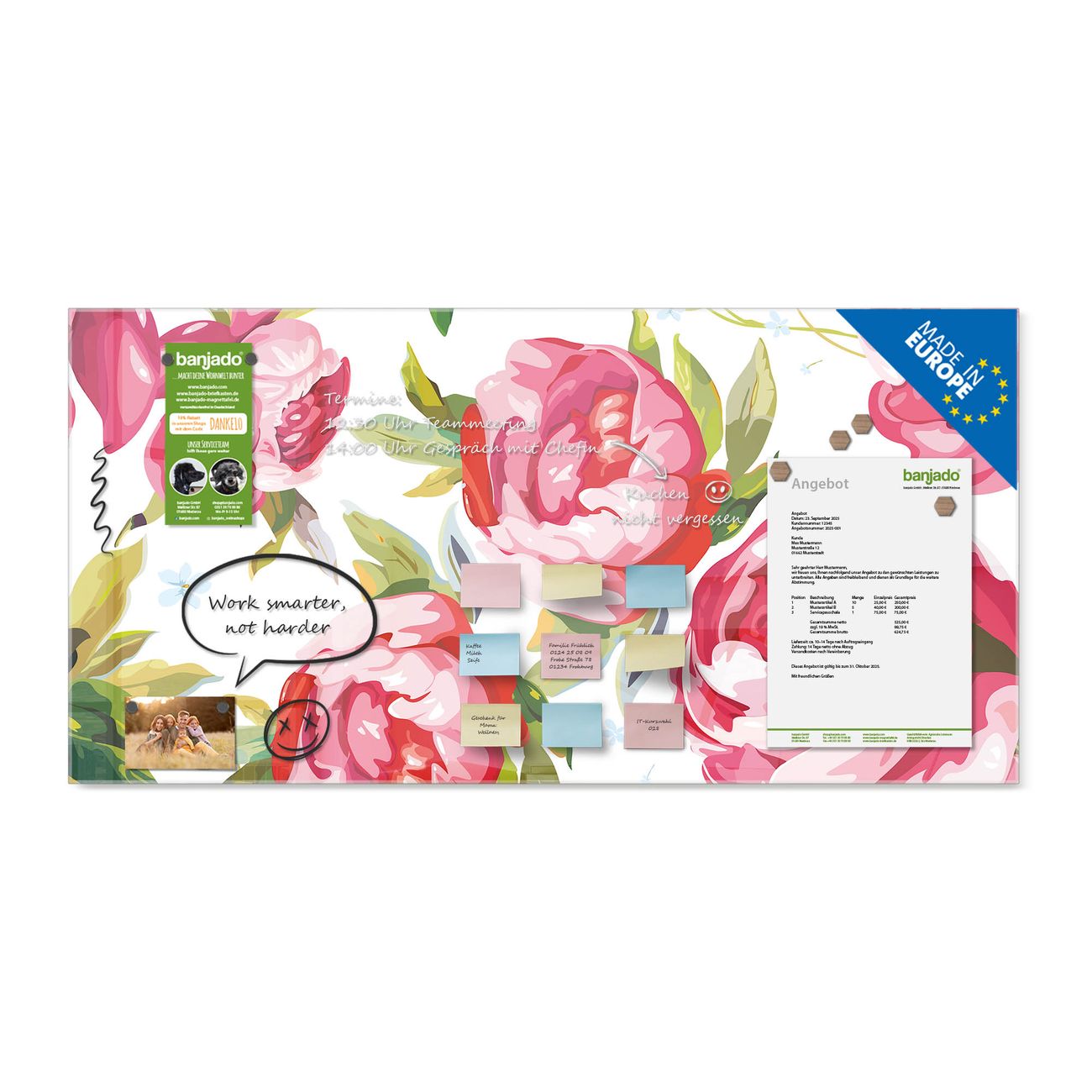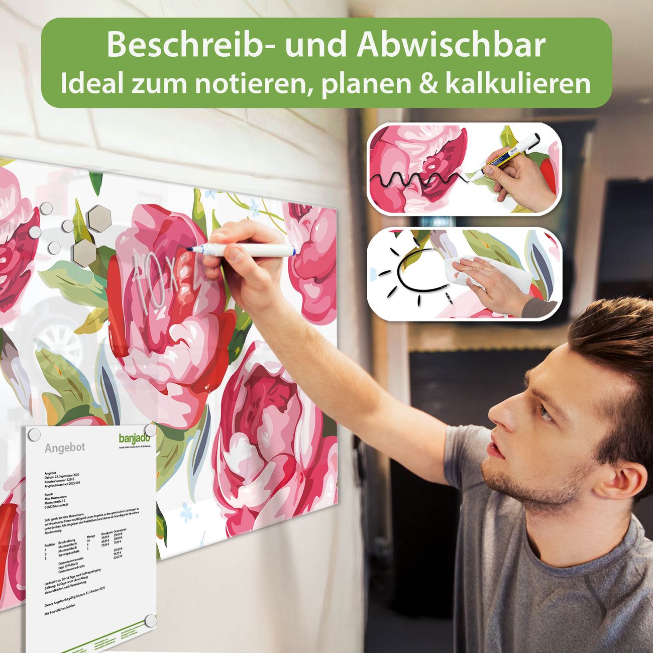 Die banjado Glas Magnettafel mit dem Motiv Motiv Rosen Rustikal verbindet Funktionalität mit Stil. Sie ersetzt das Zettelchaos durch klare Strukturen und bringt dabei eine warme, natürliche Atmosphäre in Ihr Zuhause. Ob im Büro, in der Küche oder im Eingangsbereich - dieses Design-Board zieht Blicke an und sorgt für Ordnung mit Charakter.