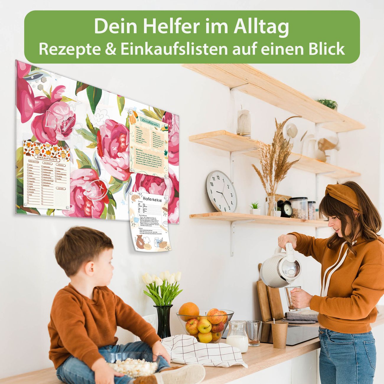 Auf der glatten Glasoberfläche lassen sich Termine, Rezepte oder Notizen ganz einfach mit Kreidestiften festhalten und rückstandslos entfernen. Starke Neodym-Magnete halten Ihre wichtigsten Erinnerungen sicher an Ort und Stelle. So entsteht Ihre ganz persönliche Ideenwand - jeden Tag neu.