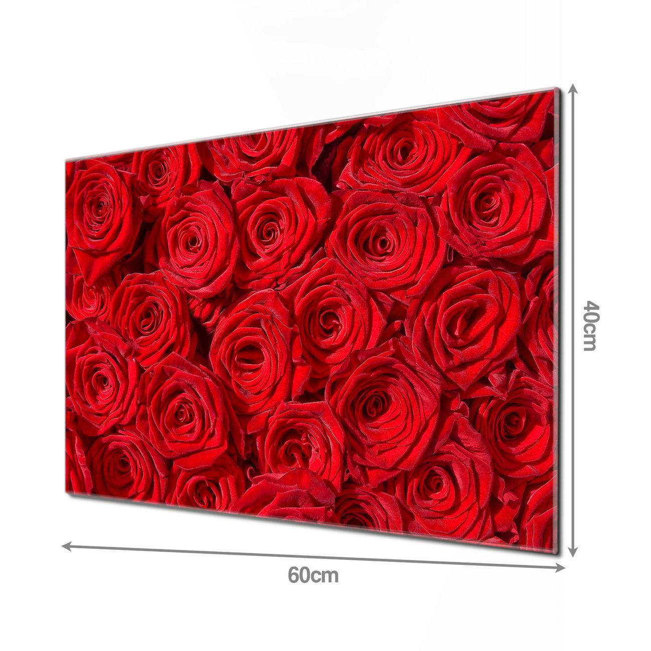 Material: 4mm Sicherheitsglas mit Metallrückwand Eigenschaften: beschreibbar, magnetisch, kratzfest Maße: 60x40x0,6cm, 3,6kg schwer Motiv Nummer 10107 Rosenbett Zubehör: inklusive 4 Neodym-Magnete