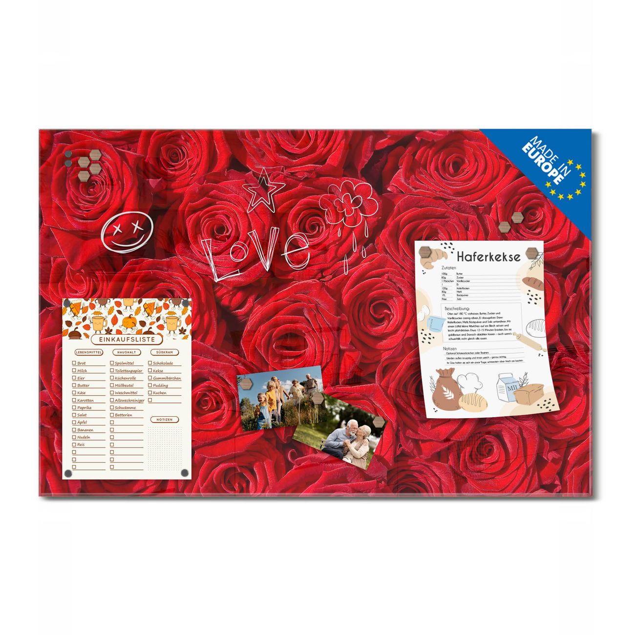 Glas Magnettafel im Querformat Motiv Rosenbett