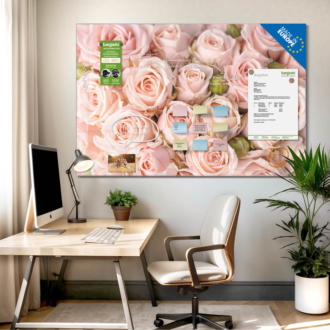 Glas Magnettafel im Querformat Motiv Rosenbouquet