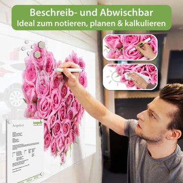 Die banjado Glas Magnettafel mit dem Motiv Motiv Rosenherz verbindet Funktionalität mit Stil. Sie ersetzt das Zettelchaos durch klare Strukturen und bringt dabei eine warme, natürliche Atmosphäre in Ihr Zuhause. Ob im Büro, in der Küche oder im Eingangsbereich - dieses Design-Board zieht Blicke an und sorgt für Ordnung mit Charakter.