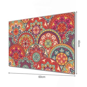 Material: 4mm Sicherheitsglas mit Metallrückwand Eigenschaften: beschreibbar, magnetisch, kratzfest Maße: 60x40x0,6cm, 3,6kg schwer Motiv Nummer 10756 Rosetten Zubehör: inklusive 4 Neodym-Magnete
