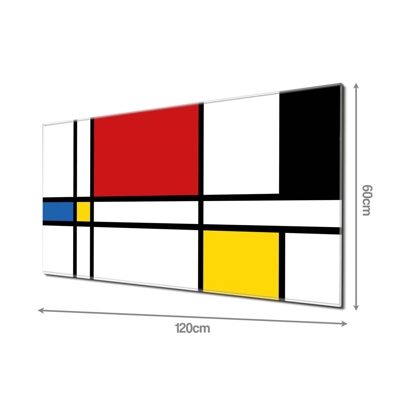 Material: 4mm Sicherheitsglas mit Metallrückwand Eigenschaften: beschreibbar, magnetisch, kratzfest Maße: 120x60x0,6cm, 10,80kg schwer Motiv Nummer 12136 Rot Gelb Blau Zubehör: inklusive 4 Neodym-Magnete