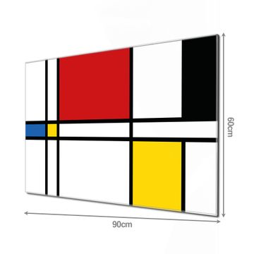 Material: 4mm Sicherheitsglas mit Metallrückwand Eigenschaften: beschreibbar, magnetisch, kratzfest Maße: 90x60x0,6cm, 8,10kg schwer Motiv Nummer 12136 Rot Gelb Blau Zubehör: inklusive 4 Neodym-Magnete