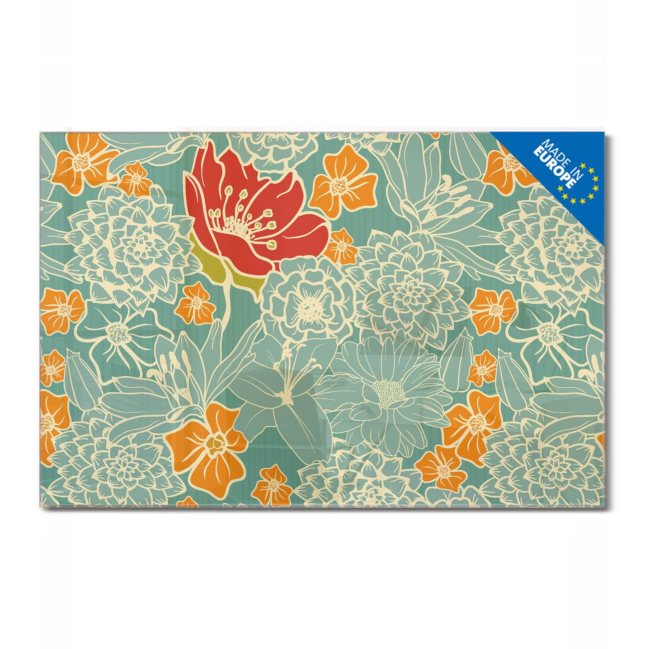 Glas Magnettafel im Querformat Motiv Rote Blumen