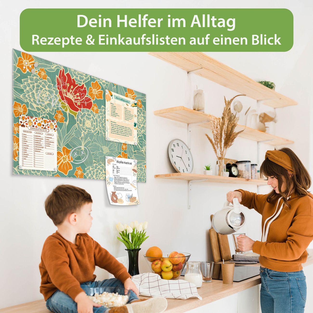 Ein Stück Design, das Ihren Alltag organisiert. Schreiben, heften, inspirieren - alles an einem Ort. Qualität, die man spürt. Montage leicht gemacht. Handwerk mit Herz - veredelt in Sachsen. Einzigartiges Design mit Motiv Motiv Rote Blumen Beschreibbare Glasoberfläche, leicht zu reinigen Starke Magnetkraft durch Stahlrückwand Inklusive 4 Neodym-Magneten Flexible Montageoptionen Handveredelt in Sachsen - Qualität, die bleibt
