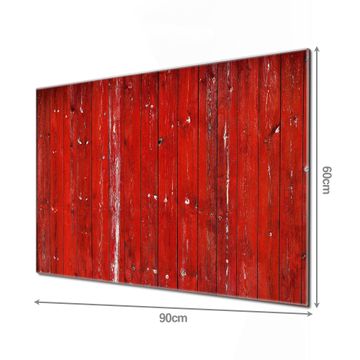 Material: 4mm Sicherheitsglas mit Metallrückwand Eigenschaften: beschreibbar, magnetisch, kratzfest Maße: 90x60x0,6cm, 8,10kg schwer Motiv Nummer 10748 Rote Holzlatten Zubehör: inklusive 4 Neodym-Magnete