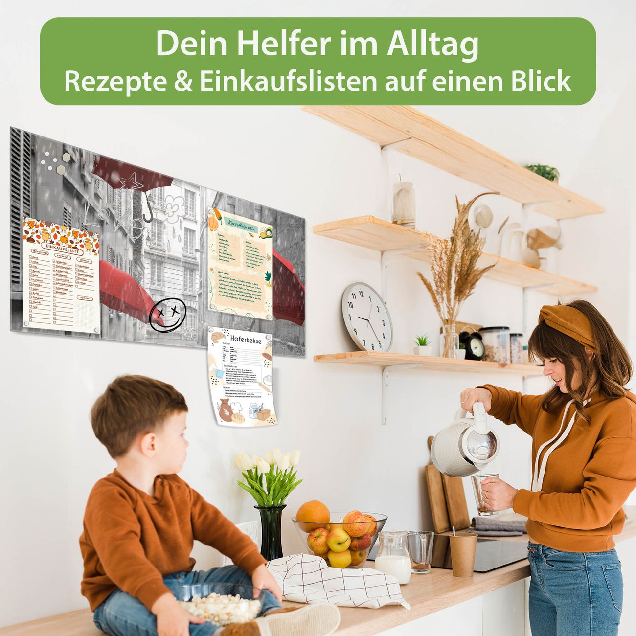 Ein Stück Design, das Ihren Alltag organisiert. Schreiben, heften, inspirieren - alles an einem Ort. Qualität, die man spürt. Montage leicht gemacht. Handwerk mit Herz - veredelt in Sachsen. Einzigartiges Design mit Motiv Motiv Rote Schirme Beschreibbare Glasoberfläche, leicht zu reinigen Starke Magnetkraft durch Stahlrückwand Inklusive 4 Neodym-Magneten Flexible Montageoptionen Handveredelt in Sachsen - Qualität, die bleibt