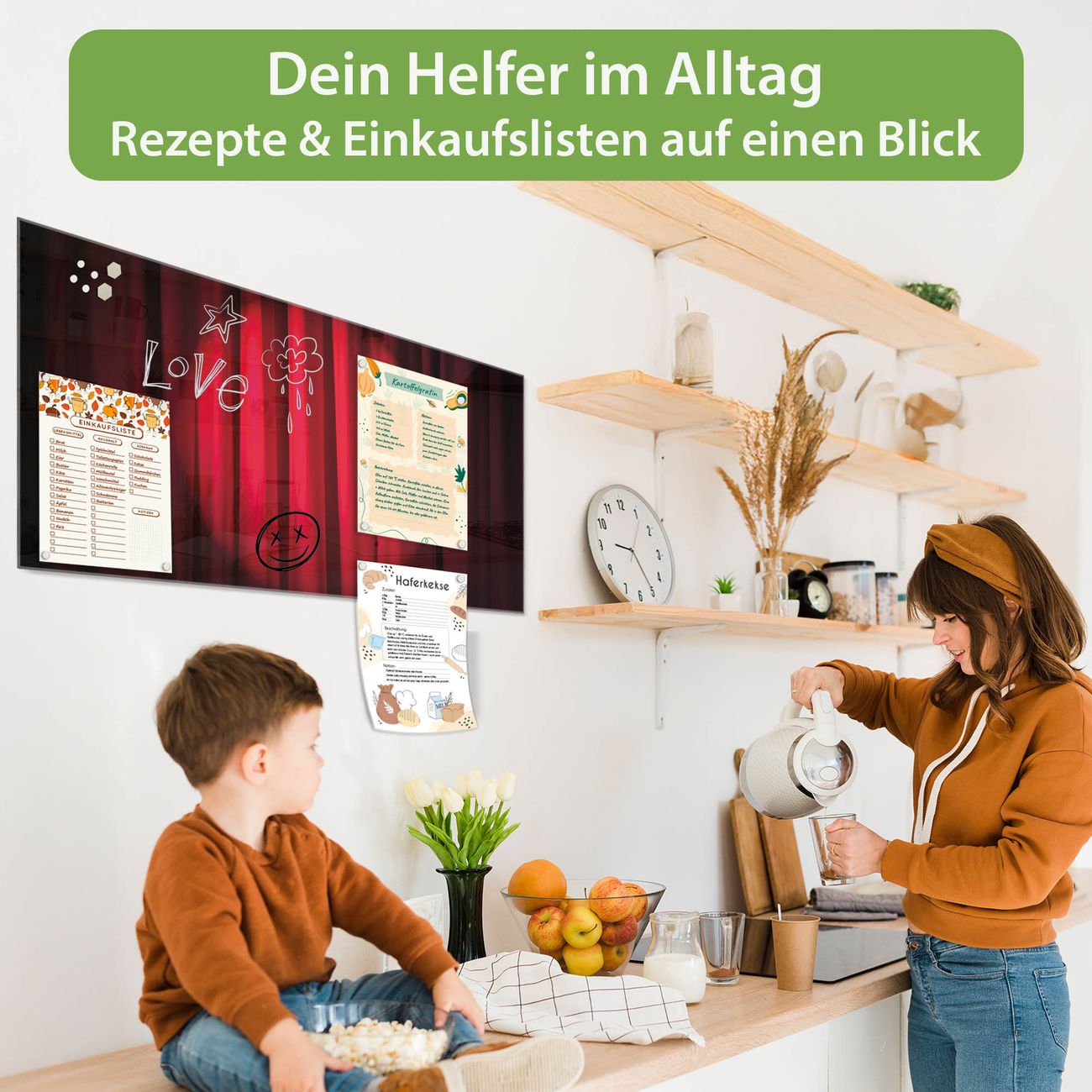 Ein Stück Design, das Ihren Alltag organisiert. Schreiben, heften, inspirieren - alles an einem Ort. Qualität, die man spürt. Montage leicht gemacht. Handwerk mit Herz - veredelt in Sachsen. Einzigartiges Design mit Motiv Motiv Roter Vorhang Beschreibbare Glasoberfläche, leicht zu reinigen Starke Magnetkraft durch Stahlrückwand Inklusive 4 Neodym-Magneten Flexible Montageoptionen Handveredelt in Sachsen - Qualität, die bleibt