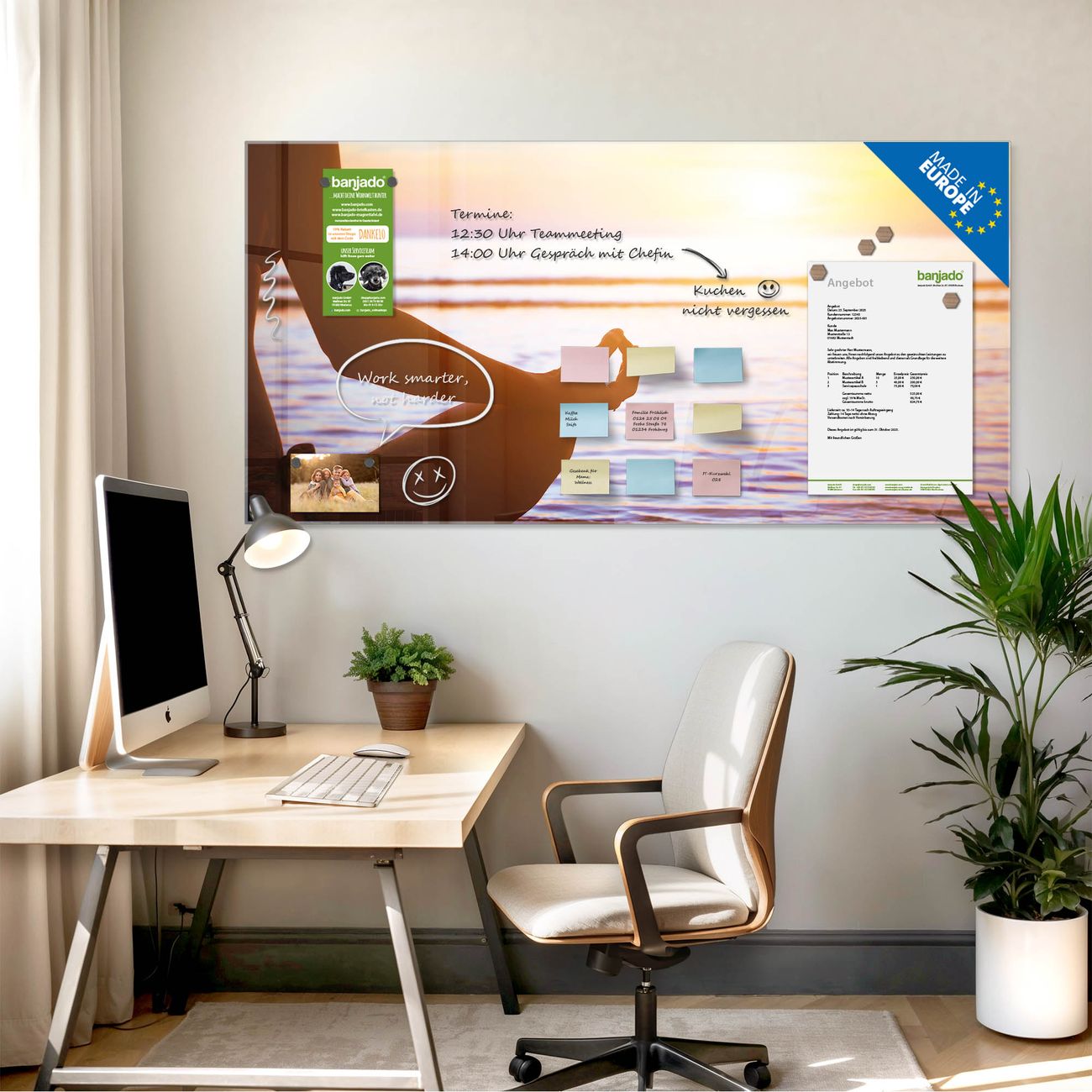 Jede Glas Magnettafel wird in unserer Werkstatt von Hand gefertigt und sorgfältig geprüft. So erhalten Sie ein echtes Qualitätsprodukt, das Funktion und Ästhetik perfekt vereint.?? Warum banjado?