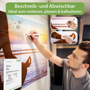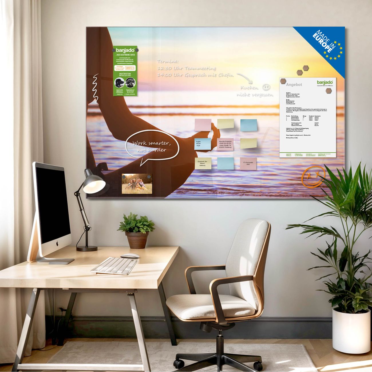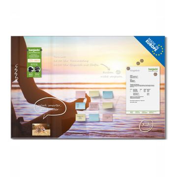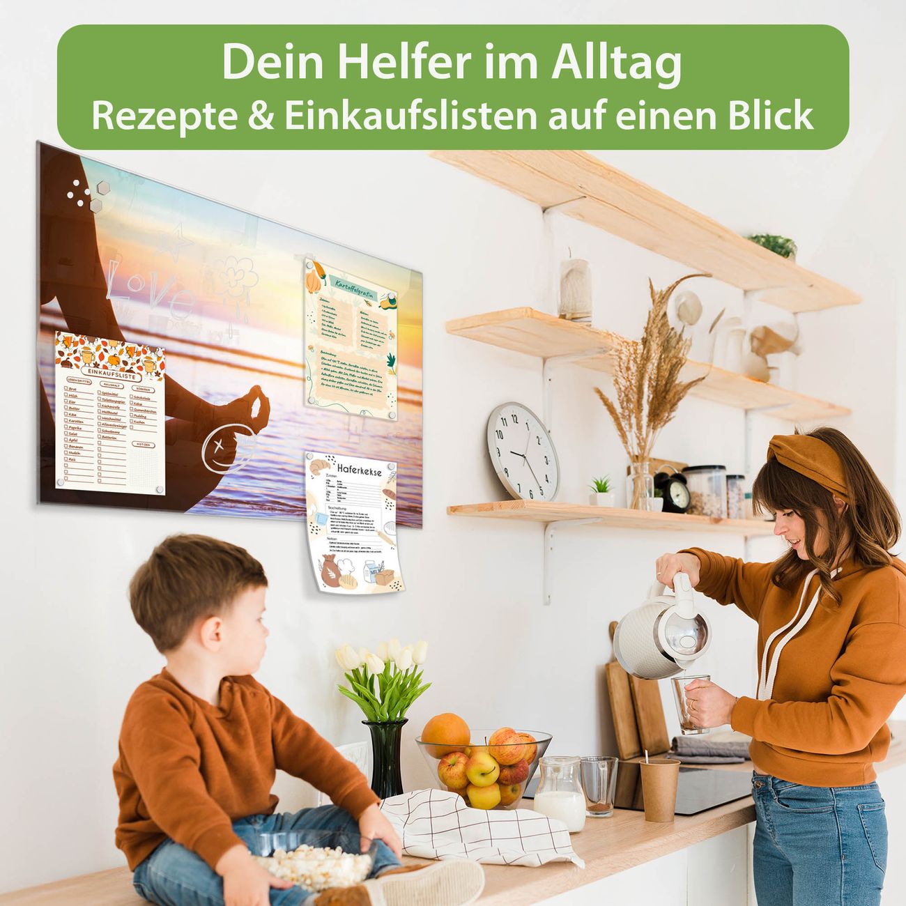 Die banjado Glas Magnettafel mit dem Motiv Motiv Ruhe verbindet Funktionalität mit Stil. Sie ersetzt das Zettelchaos durch klare Strukturen und bringt dabei eine warme, natürliche Atmosphäre in Ihr Zuhause. Ob im Büro, in der Küche oder im Eingangsbereich - dieses Design-Board zieht Blicke an und sorgt für Ordnung mit Charakter.