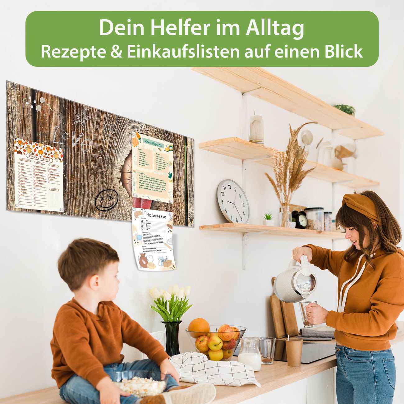 Auf der glatten Glasoberfläche lassen sich Termine, Rezepte oder Notizen ganz einfach mit Kreidestiften festhalten und rückstandslos entfernen. Starke Neodym-Magnete halten Ihre wichtigsten Erinnerungen sicher an Ort und Stelle. So entsteht Ihre ganz persönliche Ideenwand - jeden Tag neu.