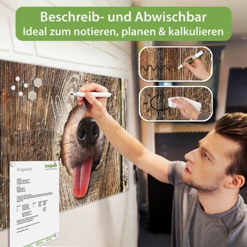 Ein Stück Design, das Ihren Alltag organisiert. Schreiben, heften, inspirieren - alles an einem Ort. Qualität, die man spürt. Montage leicht gemacht. Handwerk mit Herz - veredelt in Sachsen. Einzigartiges Design mit Motiv Motiv Rumschnüffeln Beschreibbare Glasoberfläche, leicht zu reinigen Starke Magnetkraft durch Stahlrückwand Inklusive 4 Neodym-Magneten Flexible Montageoptionen Handveredelt in Sachsen - Qualität, die bleibt