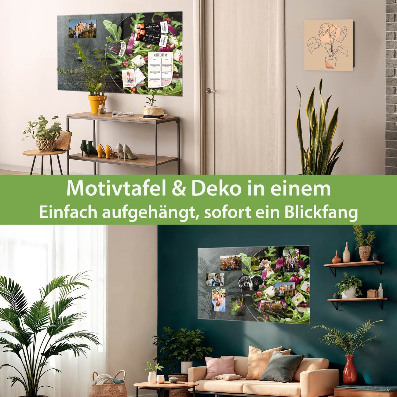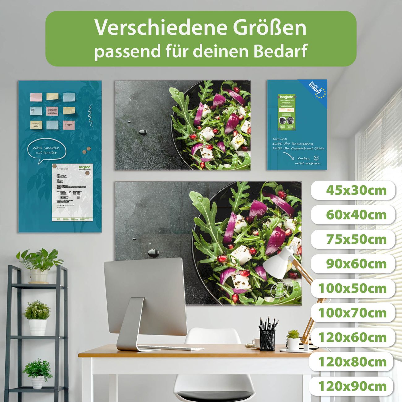 Die banjado Glas Magnettafel mit dem Motiv Motiv Salat verbindet Funktionalität mit Stil. Sie ersetzt das Zettelchaos durch klare Strukturen und bringt dabei eine warme, natürliche Atmosphäre in Ihr Zuhause. Ob im Büro, in der Küche oder im Eingangsbereich - dieses Design-Board zieht Blicke an und sorgt für Ordnung mit Charakter.