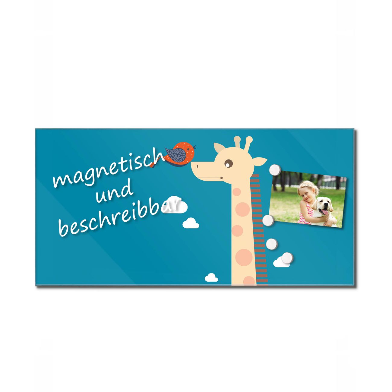 Bitte beachten Sie, dass ausschliessliche spezielle Magnete an der Glastafel haften. Wir empfehlen banjado Neodym Magnete, diese sind durch uns auf Wirksamkeit geprüft.