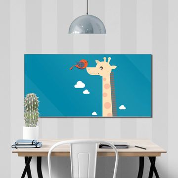 Material: 4mm Sicherheitsglas mit Metallrückwand Eigenschaften: beschreibbar, magnetisch, kratzfest Maße: 120x60x0,6cm, 10,80kg schwer Motiv Nummer 11873 Sally und Georg Zubehör: inklusive 4 Neodym-Magnete