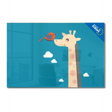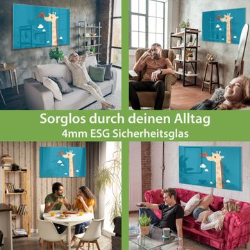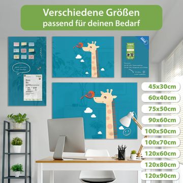 Material: 4mm Sicherheitsglas mit Metallrückwand Eigenschaften: beschreibbar, magnetisch, kratzfest Maße: 75x50x0,6cm, 5,63kg schwer Motiv Nummer 11873 Sally und Georg Zubehör: inklusive 4 Neodym-Magnete