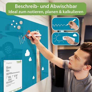 Auf der glatten Glasoberfläche lassen sich Termine, Rezepte oder Notizen ganz einfach mit Kreidestiften festhalten und rückstandslos entfernen. Starke Neodym-Magnete halten Ihre wichtigsten Erinnerungen sicher an Ort und Stelle. So entsteht Ihre ganz persönliche Ideenwand - jeden Tag neu.