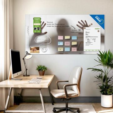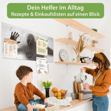 Auf der glatten Glasoberfläche lassen sich Termine, Rezepte oder Notizen ganz einfach mit Kreidestiften festhalten und rückstandslos entfernen. Starke Neodym-Magnete halten Ihre wichtigsten Erinnerungen sicher an Ort und Stelle. So entsteht Ihre ganz persönliche Ideenwand - jeden Tag neu.
