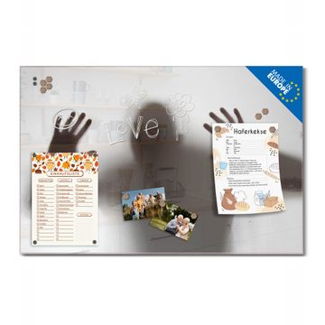 Auf der glatten Glasoberfläche lassen sich Termine, Rezepte oder Notizen ganz einfach mit Kreidestiften festhalten und rückstandslos entfernen. Starke Neodym-Magnete halten Ihre wichtigsten Erinnerungen sicher an Ort und Stelle. So entsteht Ihre ganz persönliche Ideenwand - jeden Tag neu.