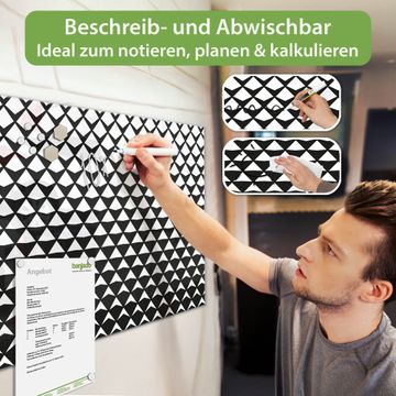 Auf der glatten Glasoberfläche lassen sich Termine, Rezepte oder Notizen ganz einfach mit Kreidestiften festhalten und rückstandslos entfernen. Starke Neodym-Magnete halten Ihre wichtigsten Erinnerungen sicher an Ort und Stelle. So entsteht Ihre ganz persönliche Ideenwand - jeden Tag neu.
